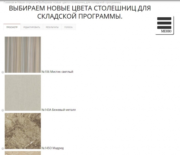 Для сайта мебельного оптовика Калужской области создан закрытый опросник по поводу включения товарных групп и отдельных товарных позиций в прайс-лист компании.