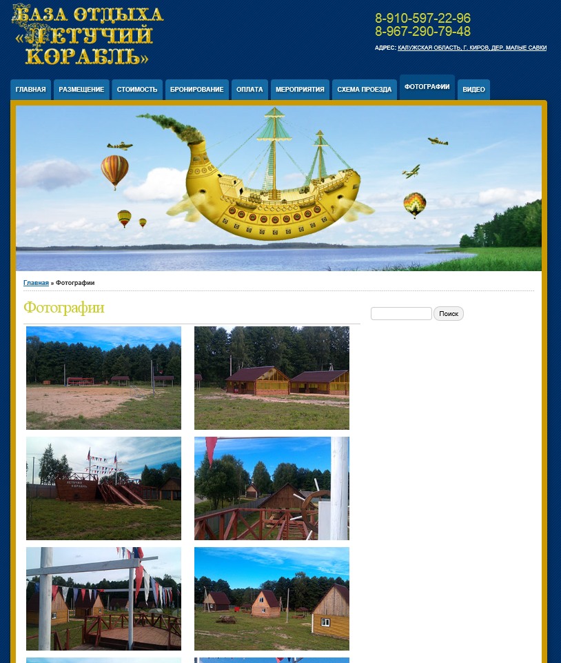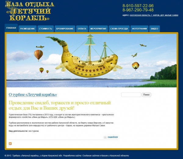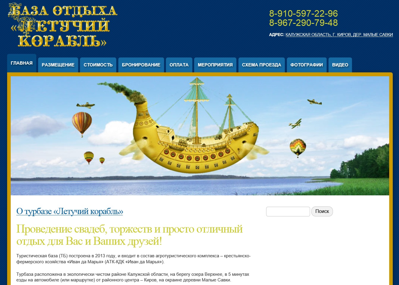 Официальный сайт базы отдыха «Летучий Корабль» (д. Малые Савки, Кировский район, Калужская область).