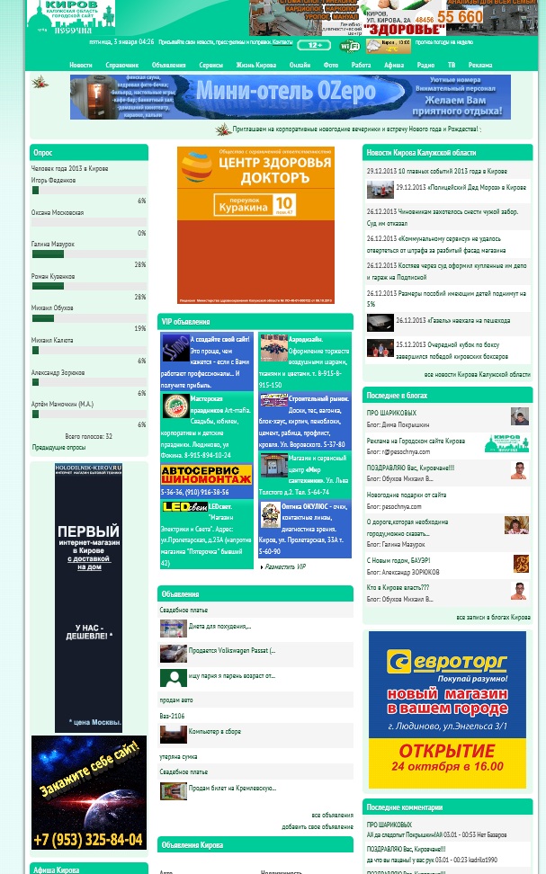 Мощная социальная сеть с разветвленным функционалом СМИ: новости, блоги, галерея, объявления, ТВ-программа, каталог организаций, рейтинг пользователей и т.д. Создан как высоконагрузочный проект с мощным кэшированием и многоступенчатой защитой от взлома и спама. В дизайне использована городская символика.