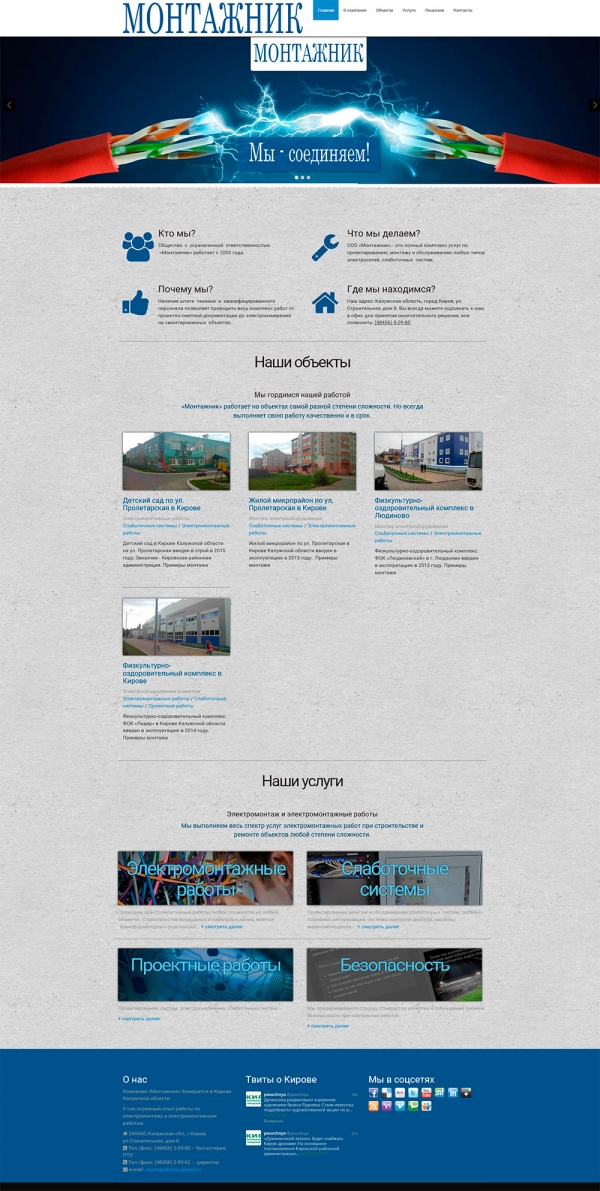 Сайт строительно-монтажной компании «Монтажник» г. Киров Калужской области.