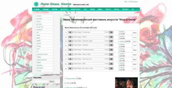 Официальный сайт знаменитого хиппи-музыканта Папы Леши (Алексея Бармутова).