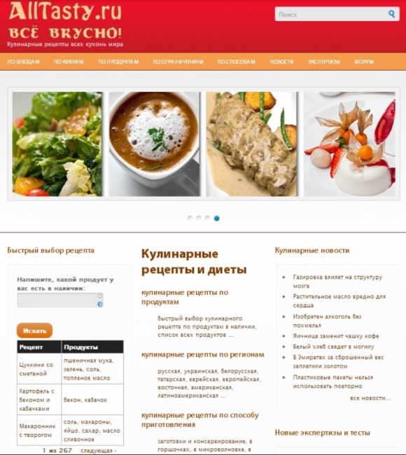 Разработан как универсальный портал домашнего хозяйства, целевая аудитория - женщины 15-60 лет. Имеет возможность подбора рецептов по ингридиенту, четкую структуру блюд, мгновенный поиск, подробные описания диет.