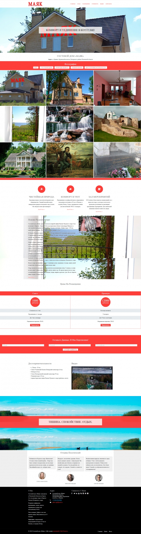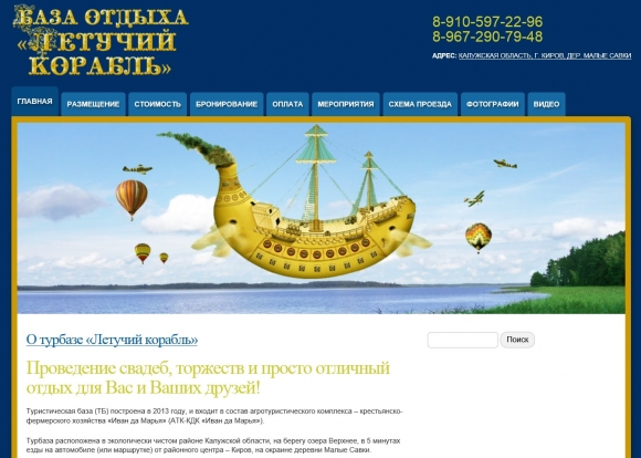 Официальный сайт гостиницы «Озеро» в Кирове Калужской области - простой, но функциональный.